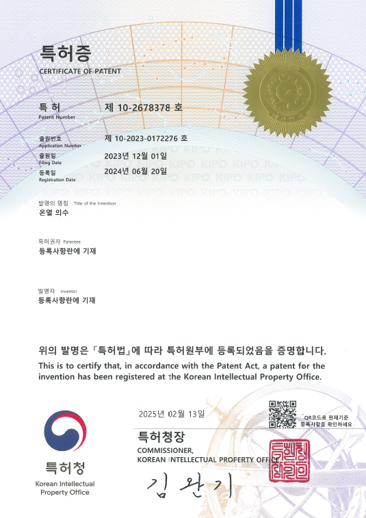 - 등록번호(’24.06.20) 제 10-2678378 호